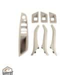 Manere complete formate din 2 piese: capac piele + parte interioara din plastic, culoare oyster, compatibile cu toate versiunile de BMW Seria 5 F11.